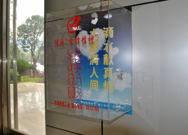 為深入貫徹落實(shí)省總工會(huì)十四屆五次全會(huì)精神,推動(dòng)學(xué)雷鋒活動(dòng)在華菱衡鋼的持續(xù)開展與深化,促使學(xué)雷鋒活動(dòng)內(nèi)涵時(shí)代化、學(xué)習(xí)常態(tài)化、載體大眾化,使雷鋒精神成為激勵(lì)全體員工奮力創(chuàng)建世界一流的不竭動(dòng)力,推進(jìn)和諧衡鋼的科學(xué)發(fā)展,衡鋼工會(huì)出臺(tái)了《華菱衡鋼“爭(zhēng)當(dāng)雷鋒傳人、弘揚(yáng)偉大品格”活動(dòng)方案》,根據(jù)方案要求,四大活動(dòng)主要內(nèi)容之一是建立與完善衡鋼“傳承雷鋒精神”志愿者隊(duì)伍與志愿活動(dòng)管理的長(zhǎng)效機(jī)制,長(zhǎng)效機(jī)制的建立其中之一便是設(shè)立衡鋼“傳承雷鋒精神”慈善募捐箱。