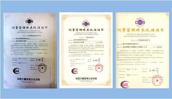 華菱湘鋼、華菱漣鋼、華菱衡鋼測量管理體系認(rèn)證證書
